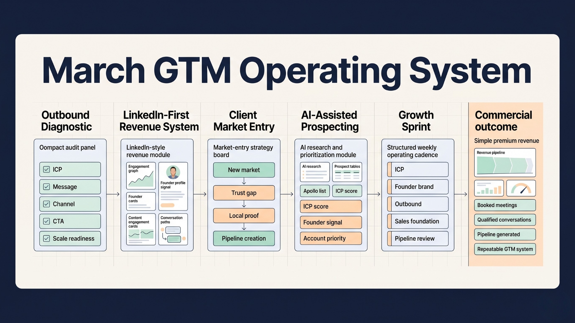 Get clear on the market. Build the right list. Create founder visibility. Turn calls into content and proof. Let each part strengthen the next.