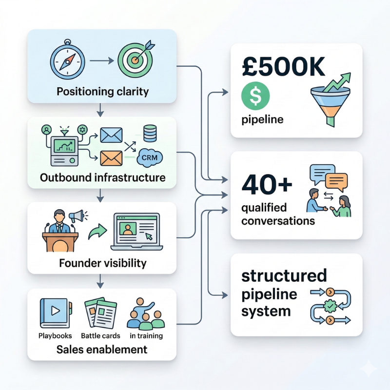 We embedded as a fractional growth partner, working directly with the founder to weave positioning, outbound, and sales into a single coherent motion. No theory. No delays. Just measurable progress.